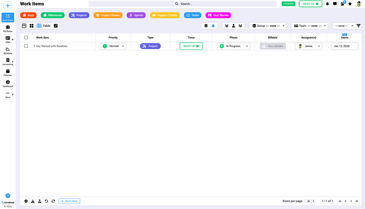 Ravetree is built for agencies and creative teams that need more than just task tracking, It combines project management with time tracking, resource planning, file storage and even a basic CRM. Instead of treating time and budgets as separate functions, Ravetree keeps them connected to projects, which helps teams monitor delivery performance and profitability