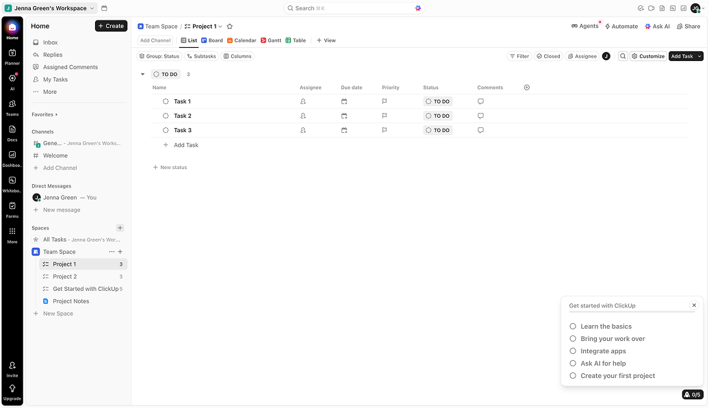 ClickUp provides one of the most feature-rich plans in the project management software category. It consolidates tasks, documents, whiteboards, time tracking and dashboards, making it an ideal tool for teams that want flexibility and feature depth without the commitment.