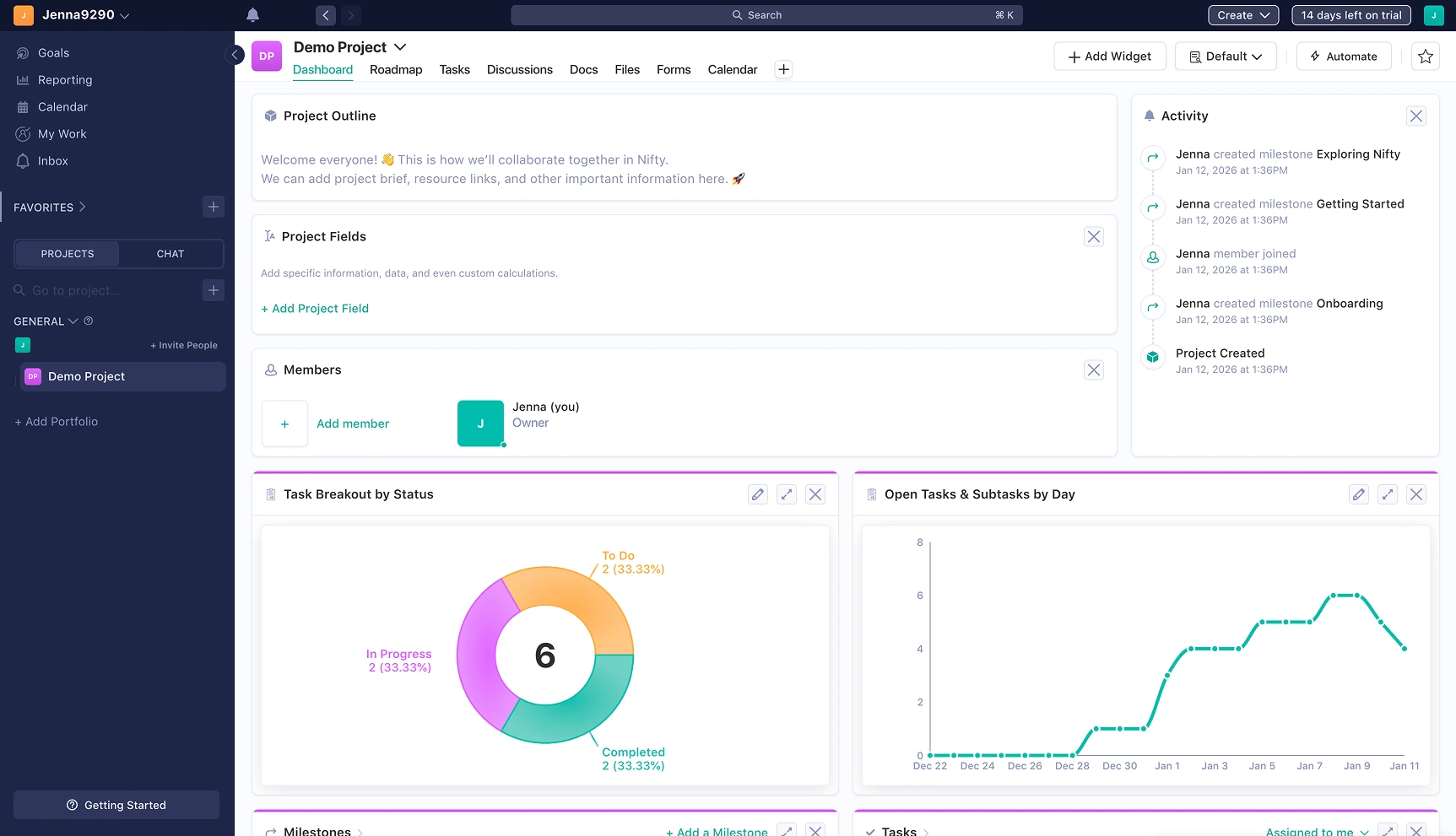 Nifty focuses on the balance between simplicity and planning features. It is a good option for teams who prefer Basecamp's collaborative experience, but need timelines, milestone tracking and more structured project supervision.