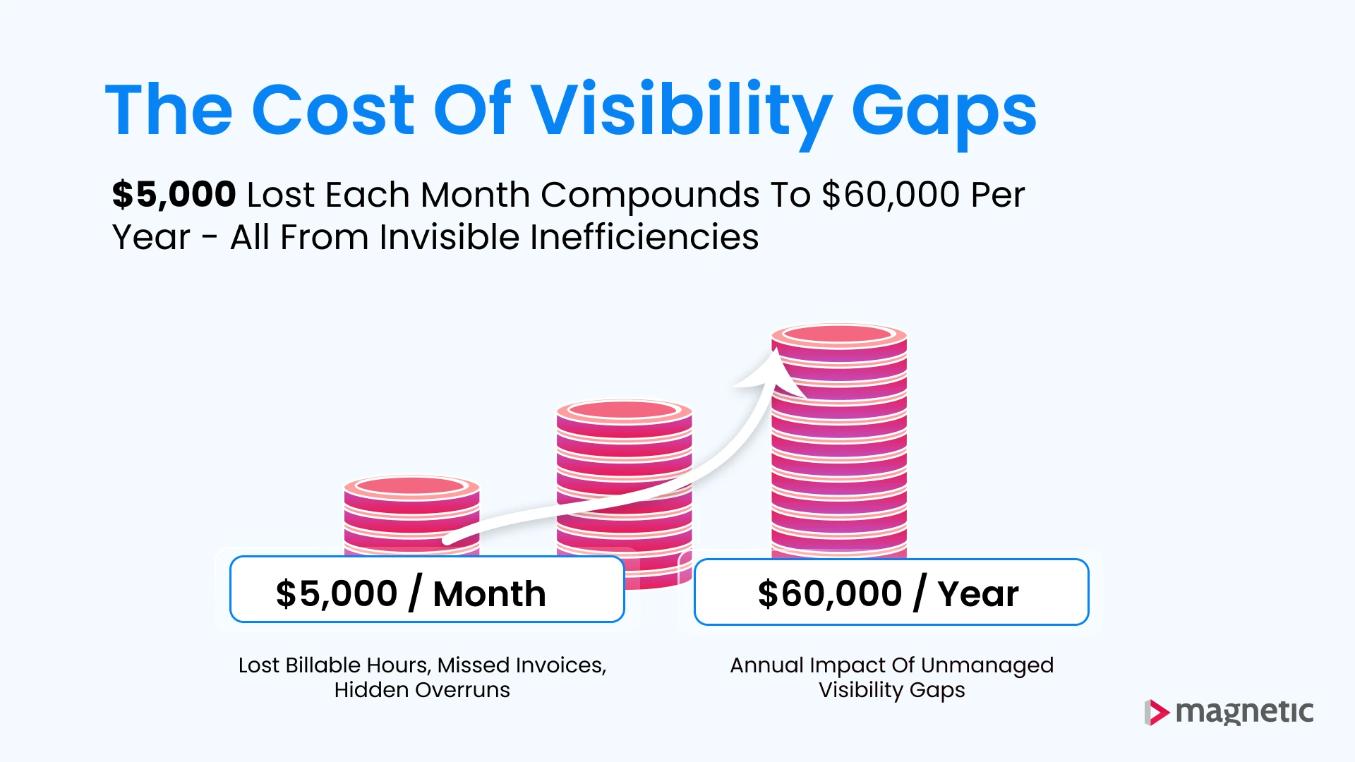 Visibility gaps don't usually show up as dramatic failures. They don’t break systems or send clients rushing for the exit. Instead, they hide in the background - in unbilled hours, overrun projects and missed opportunities - until they’ve chipped away at both profit and morale.