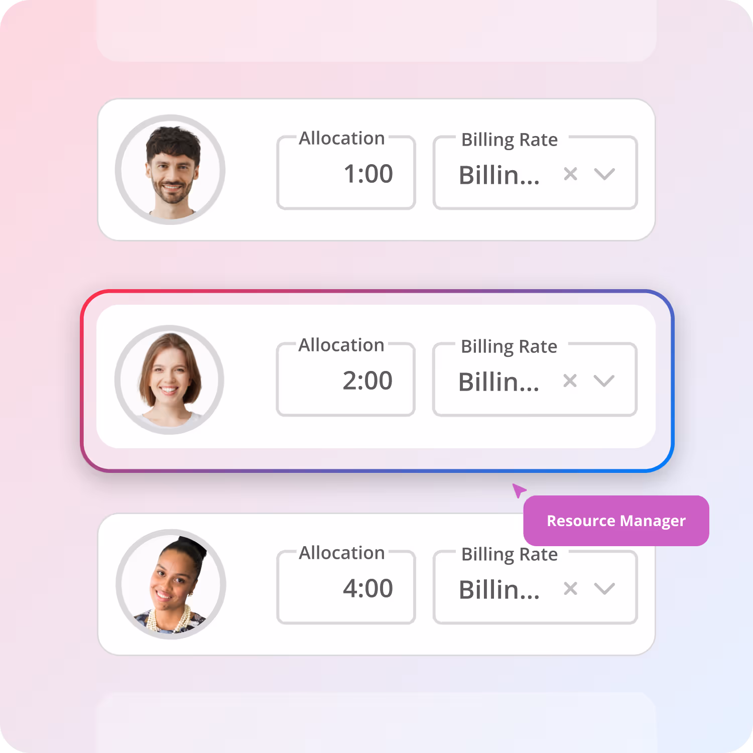 Visualise team availability and workload across all projects. Schedule resources based on skills and capacity. Forecast future needs based on your sales pipeline.
